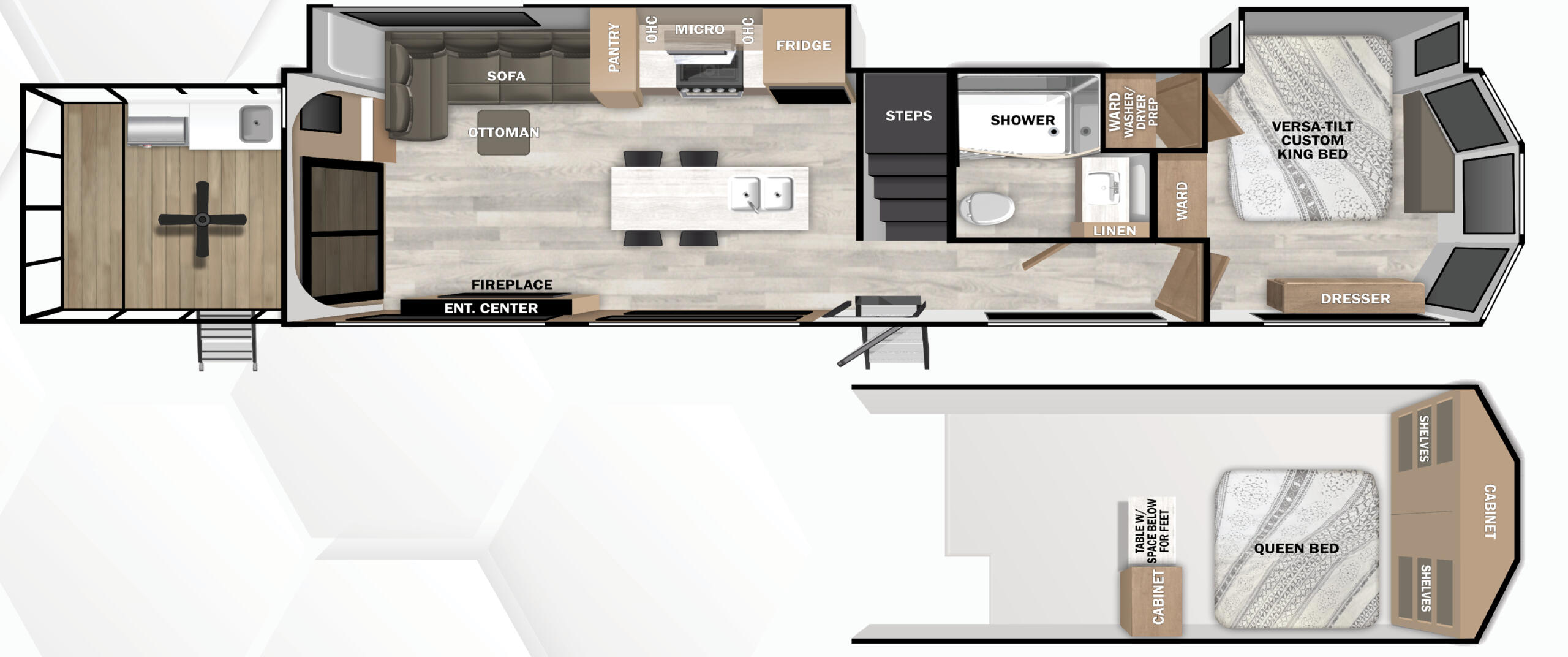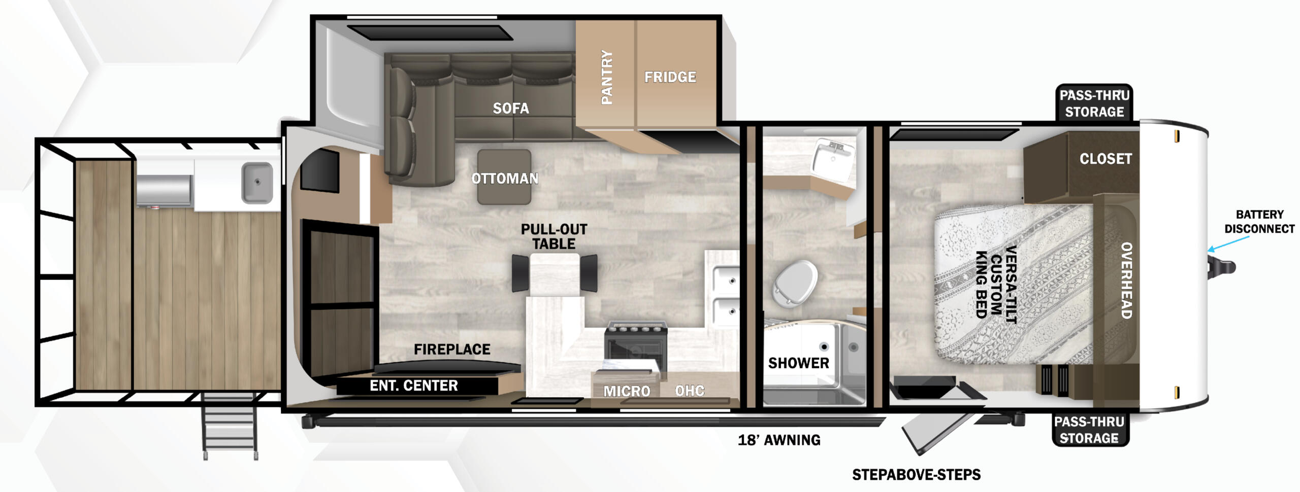 Meet the VERSA-GLIDE deck system, the industry’s first electronically extendable deck. With just a touch, seamlessly expand your outdoor space, creating the perfect setting for any occasion. Whether you’re enjoying a peaceful night under the stars or hosting a lively gathering, VERSA-GLIDE elevates every outdoor experience. Available exclusively on Salem Veranda travel trailer models.